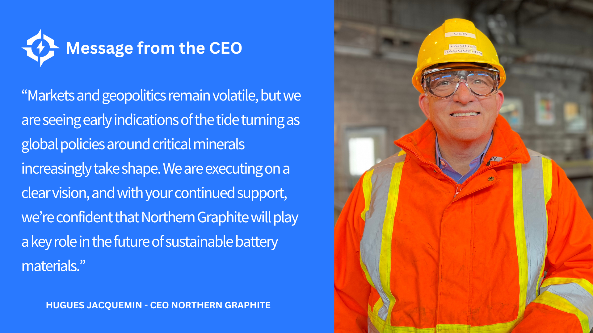 Northern Graphite is a Canadian, TSX Venture Exchange listed company that is focused on becoming a world leader in producing natural graphite and upgrading it into high value products critical to the green economy, including anode material for lithium-ion batteries/EVs, fuel cells and graphene, as well as advanced industrial technologies.
