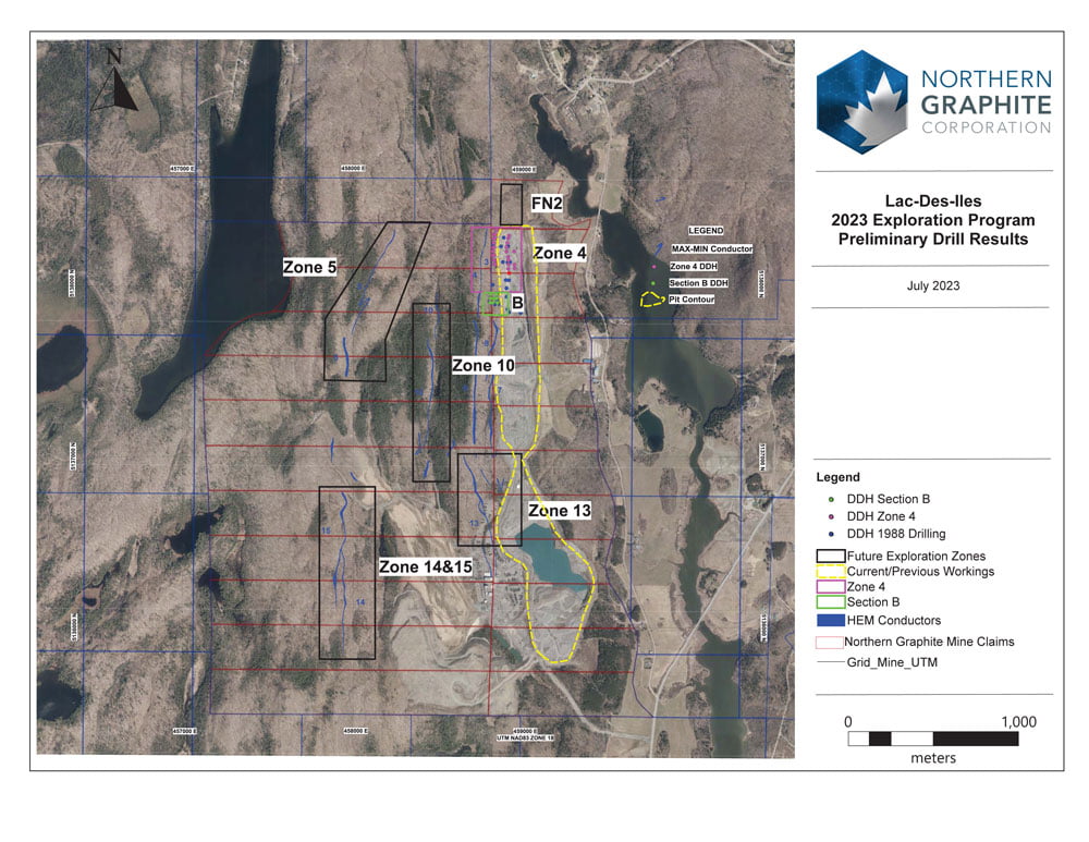 Northern Graphite Corporation (NGC:TSX-V, NGPHF:OTCQB, FRA:0NG, XSTU:0NG) (the “Company” or “Northern) is pleased to announce initial drill results from its Lac des Iles (“LDI”) mine that point to the potential to extend the life of North America’s only significant graphite producer.